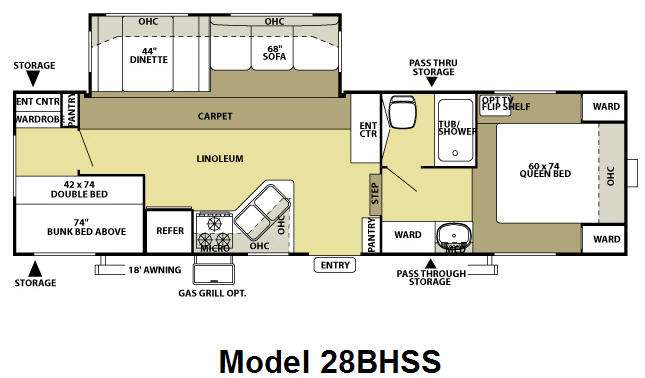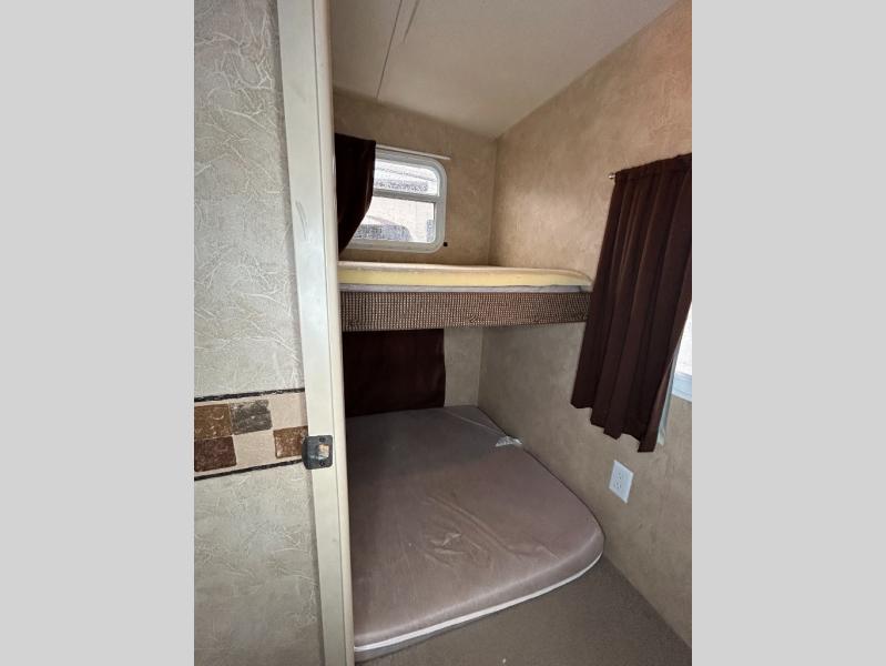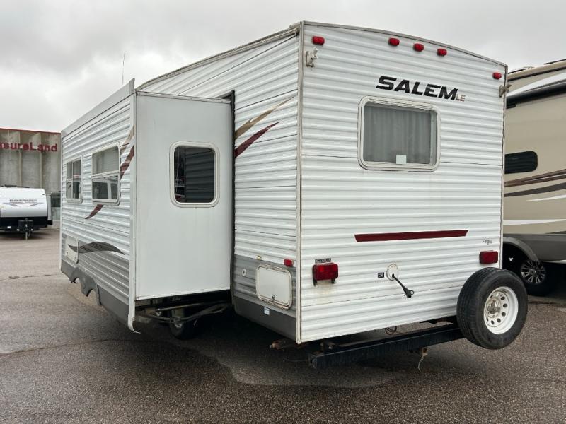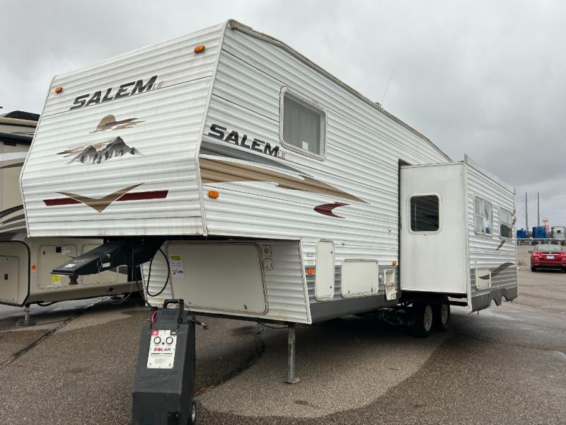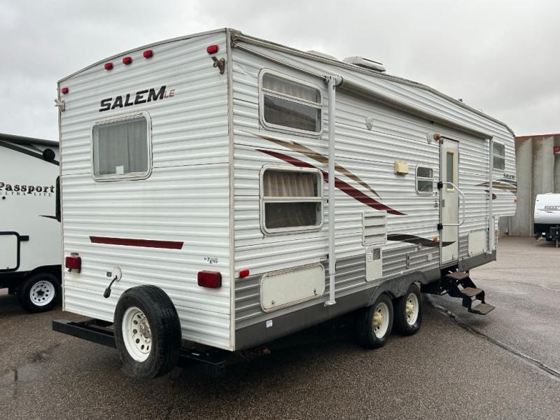 Single Slide Salem LE Fifth Wheel, Rear Bunkhouse w/Double Bed Below, Bunk Above, Ent Center, Wardrobe, Pantry, Slide Out Booth Dinette & Sofa w/Overhead Cab., Refrigerator, 3 Burner Range, Double Kitchen Sink, Pantry, Ent Center, Step Up Bath/Bedroom, Toilet, Tub/Shower, Lav. w/Med. Cab., Front Queen Bed, Dbl. Wardrobe, Opt. TV Shelf, Pass Through Storage, Gas Grill Opt., 18' Awning and More.