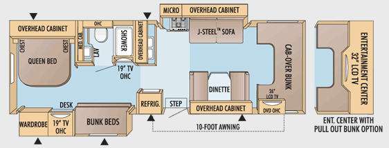 Double Slide Greyhawk Class C Motor Home w/Rear Queen Bed, Dbl. Chests, Ward./19" TV & Desk/Bunk Beds Slide Out, Side Aisle Bath w/Shower, Lav. w/Med. Cab., Toilet, 19" TV, Refrig., Dbl. Kit. Sink, 3 Burner Range w/Micro. & J-Steel Sofa Slide Out, Booth Dinette, 26" LCD TV w/DVD, Cab-Over Bunk or Opt. Enter. Center w/32" LCD TV & Pull Out Bunk, Overhead Cabinets Throughout, 10' Awning, Outside Storage & More.