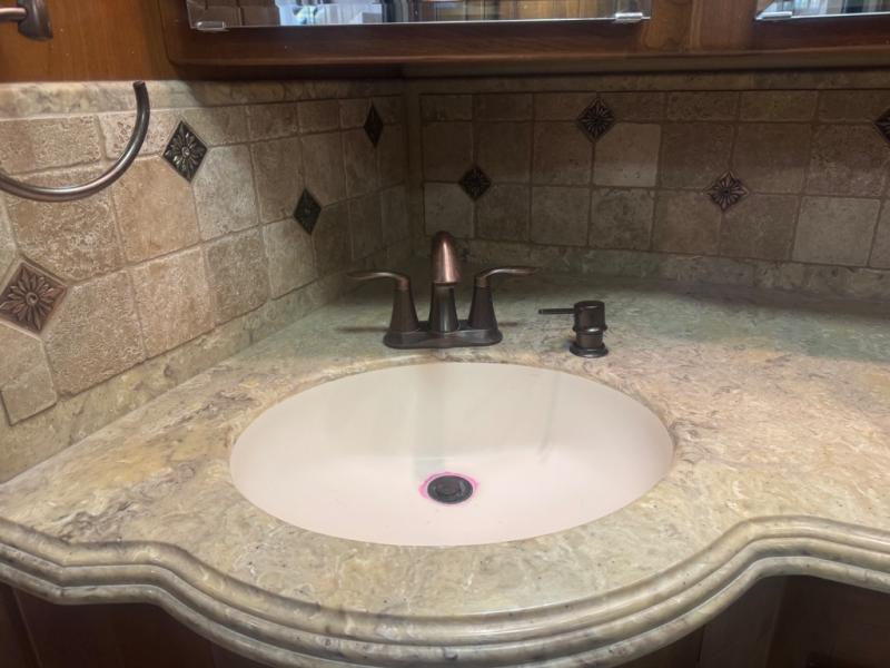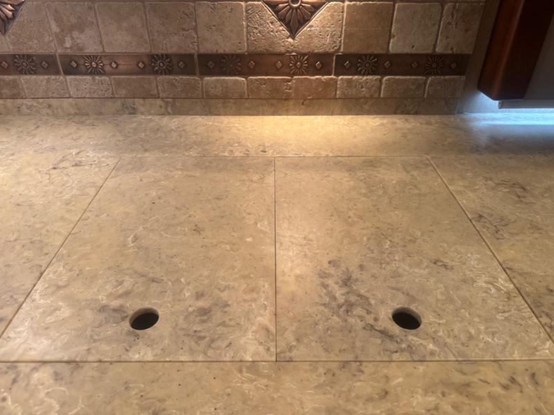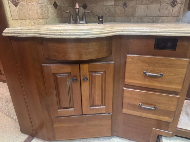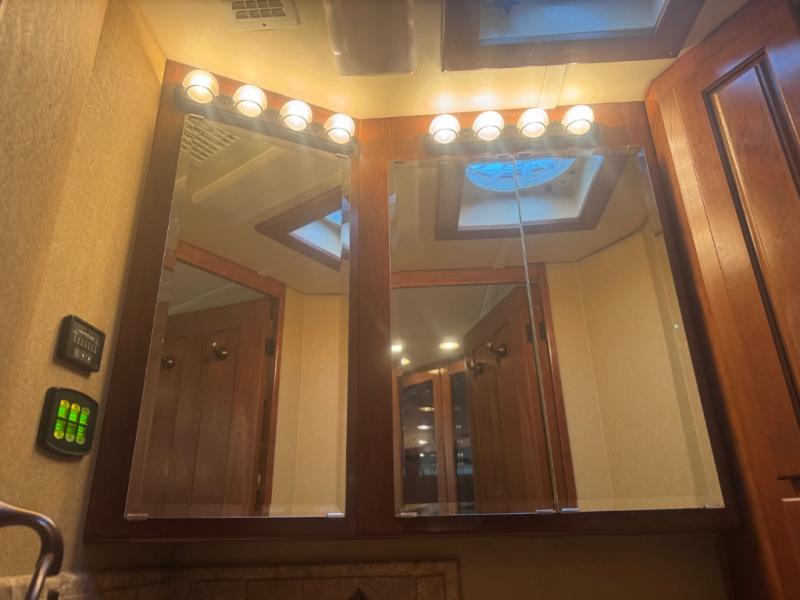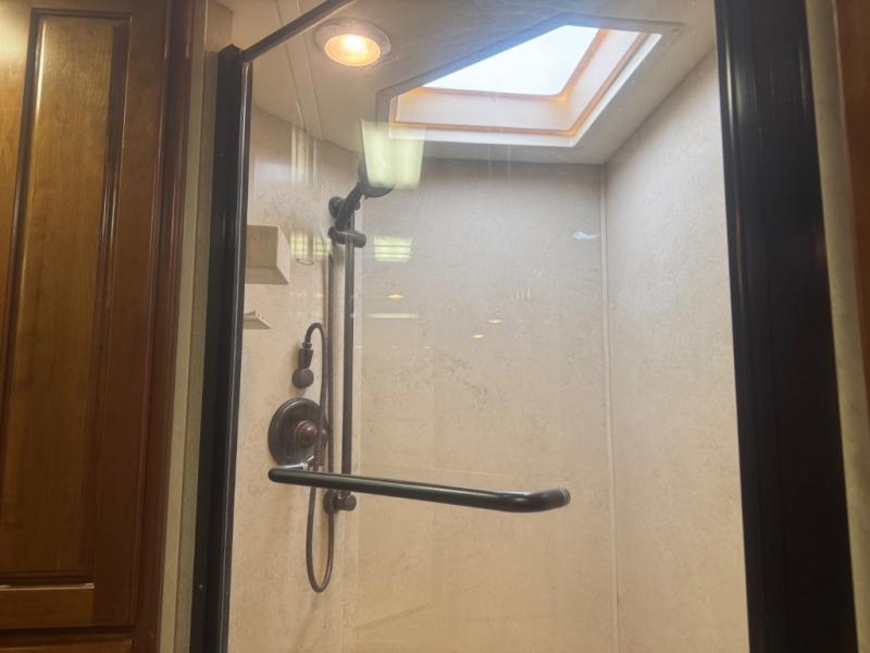 Full Bath with Dual Vanities and a large tile shower, offering luxurious spa-like features on the road.