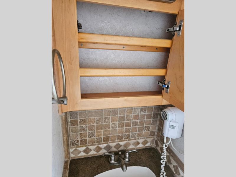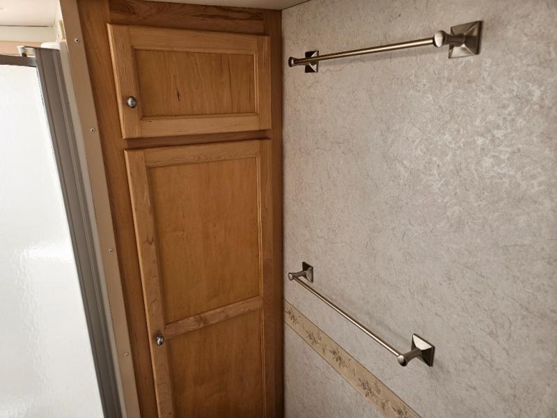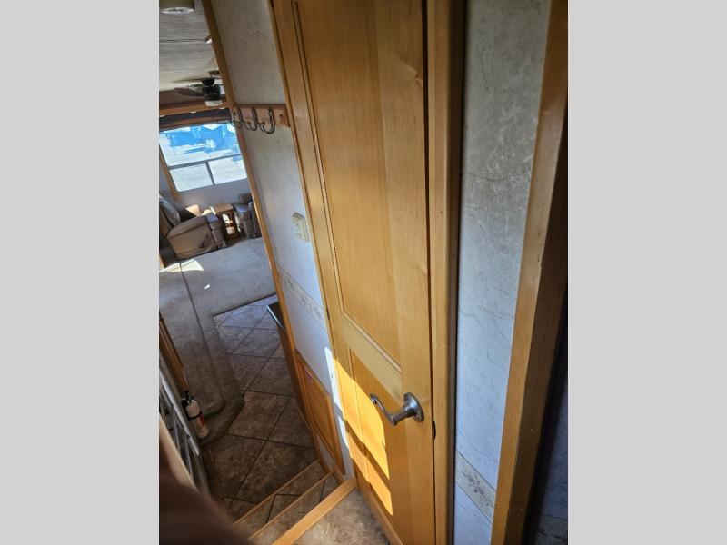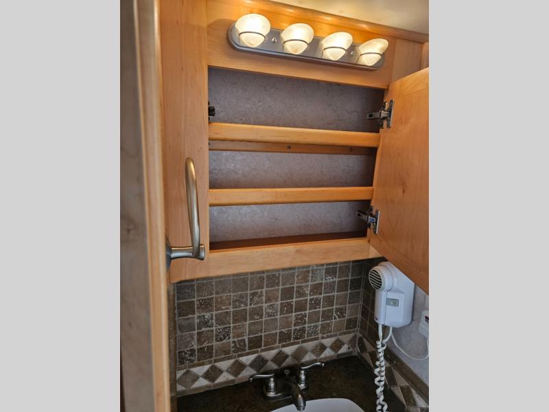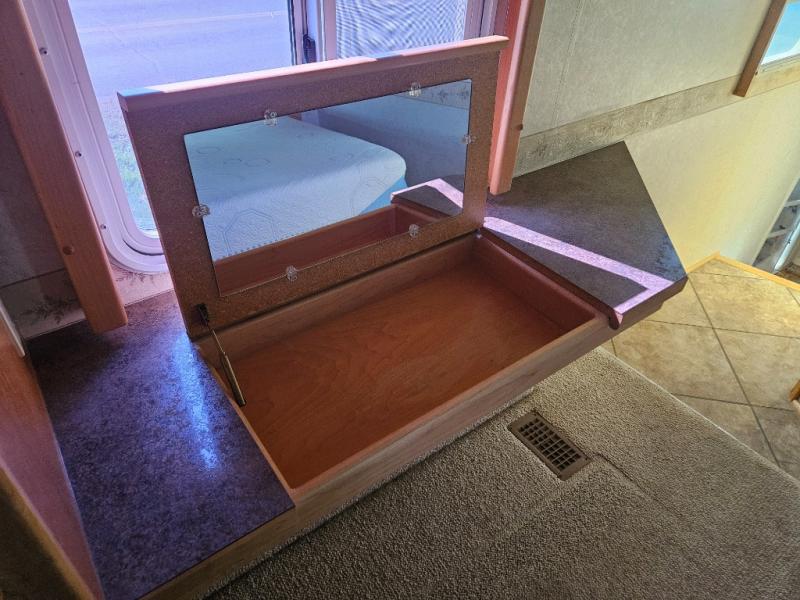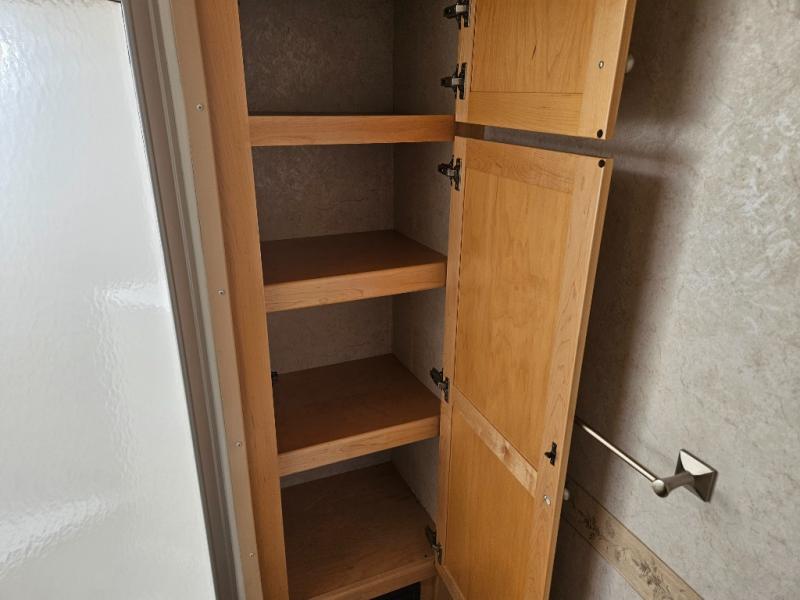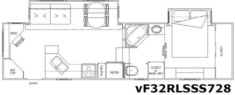 Double Slide FW, Rear Desk w/Chair, Enter. Center, Sofa & Free Standing Oval Table w/Chairs Slide Out, Dbl. Kitchen Sink, 3 Burner Range, Refrig., Pantry, Corner Shower, Lavatory, Private Toilet Area, Closet or Washer/Dryer Prep., Opt. Pocket Door to Bedroom, Slide Out Front Queen Bed, Closet & More.