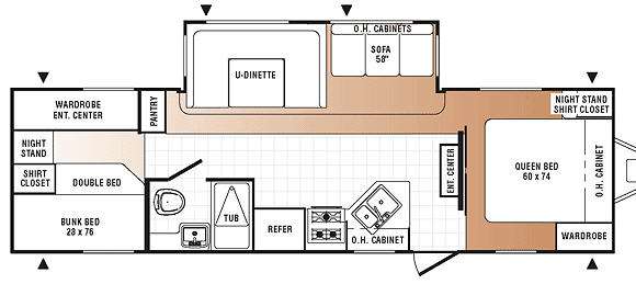 Single Slide Puma Bunkhouse Travel Trailer w/Rear Bunk Above Lower Double Bed, Shirt Closet, Nightstand, Wardrobe/Ent. Center, Pantry, U-Shaped Dinette & Sofa Slideout, Ent. Center, Double Kitchen Sink, Refrigerator, 3 Burner Range, Bath Including Tub, Lav. & Toilet, Front Queen Bed w/Shirt Closet/Nightstand, Wardrobe, Pass-Thru Storage & More.