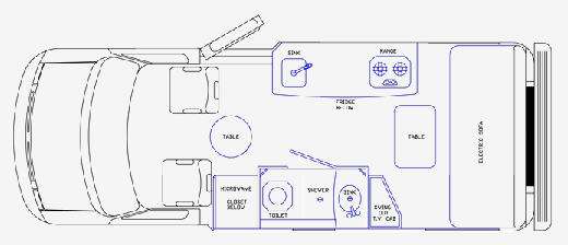 Excel Class B Motor Home w/Rear Electric Sofa/Converts to Bed, Table, Swing-Out, TV/Video Cassette Player, 2 Burner Range w/Refrigerator Below, Sink, Closet w/Microwave Above, Stand-Up/Sit-Down Shower, Private Toilet Area w/Lav., Round Table Up Front, Overhead Storage Cabinets and More.