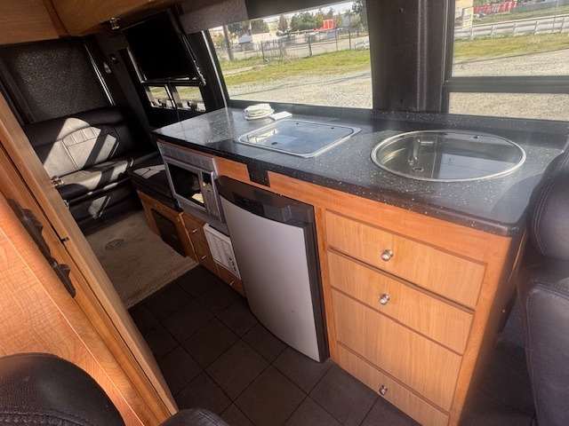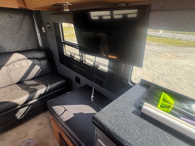 Sleeps 2, Convertible Sofa, Microwave, Two burner stove, Refrigerator, 12 ft power awning, 15 in television, AM/FM/CD/DVD radio, Interior speakers, Generator, 9,200 BTU air conditioner, 6 gal Water heater, Wet bathroom, Exterior Shower, Back up camera, Cruise control.