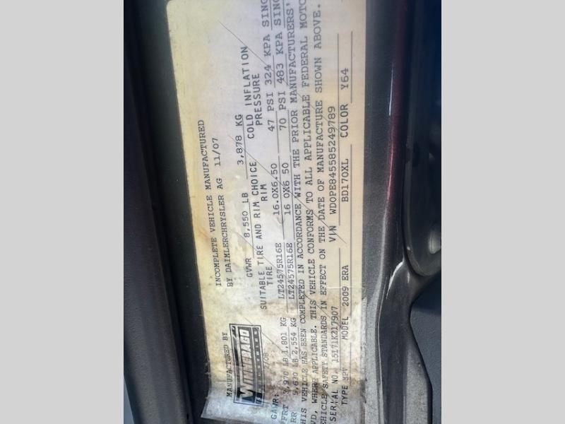 Engine; 3L Mercedes CDI 6-Cylinder 154-HP Turbo-Diesel Engine. 5 Speed Automatic Tip-Shift Transmission. Dimensions; Length: 24' 1", Width: 6' 4", Exterior Height: 9' 7", Interior Height: 6' 3", Wheelbase: 170". Weight; GVWR: 8,550 llbs, GCWR: 13,550 lbs. Tow Capacity: 5,000 lbs. Holding Tanks; Fresh water: 30 gal, Gray water: 22 gal, Black water: 10 gal.
