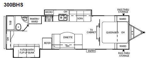 Coachmen Freedom Express Travel Trailer w/Rear Corner Bath Including Tub/Shower, Toilet & Sink, Overhead Cabinets, Futon w/Flip Up Bunk Slideout, Refrigerator, Booth Dinette w/Overhead Cabinet, TV Cabinet, Front Queen Bed w/Wardrobes, Pass-Thru Storage, 3 Burner Range w/Microwave Above/Dbl. Kitchen Sink & Sofa Slide, Pantry/Wardrobe & Much More!