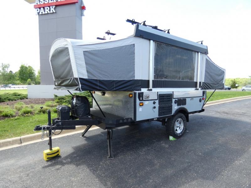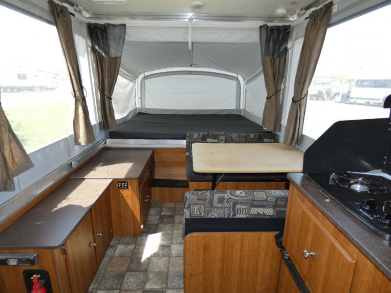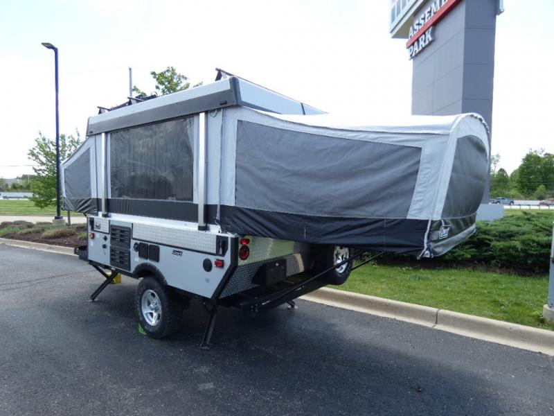 The Evolution Series Folding Pop-Up Camper by Coleman, Rear & Front Tent End Beds, Booth Dinette w/Portable Dinette Table, Storage, Bed Step, Galley w/2 Burner Range, Single Sink, Storage, Front Cargo Ext. Deck and More.