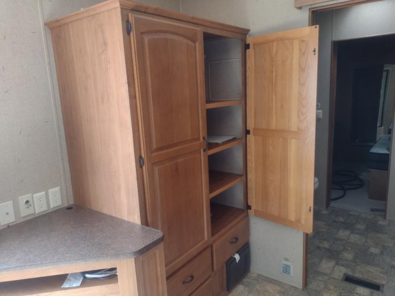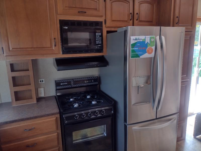 Double Slide, Rear Queen Bed Slide Out w/Nightstands, Full End Wall Wardrobe w/Sliding Mirrored Doors, Private Bedroom Entrance, Dresser w/Overhead Cabinets, Washer/Dryer Area, Lav. w/Med. Cabinet, Linen Cabinet, Angle Shower, Double Pantry, Ent. Center/Fireplace Opt., Front Kitchen w/Double Sink, 3 Burner Range, Drawers, Microwave, Refrigerator, Pantry, Patio Door, 2 Recliners/Sofa w/Overhead Cabinet & Free Standing Dinette Slide Out and Much More.