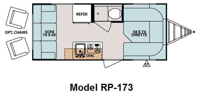 R-Pod Travel Trailer, Rear Sofa or Opt. Lounge Chairs, Refrig., Galley Sink, 2 Burner Range, Toilet, Lavatory, Front U-Shaped Dinette, Ext. Storage and More.