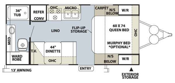 Rockwood Mini Lite Trailer w/Rear Bath Including Tub, Toilet, Lav., Med. Cabinet & Wardrobe, Refrigerator, 3 Burner Range w/Microwave, Double Kitchen Sink, Booth Dinette w/TV & Overhead Storage Cabinet, Front Queen Bed w/Wardrobes w/Nightstands Below, Flip Up Storage Under Bed, Linoleum & Carpet Throughout, 13' Awning, Exterior Storage and More!
