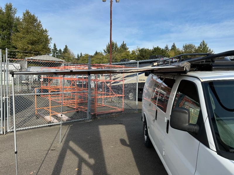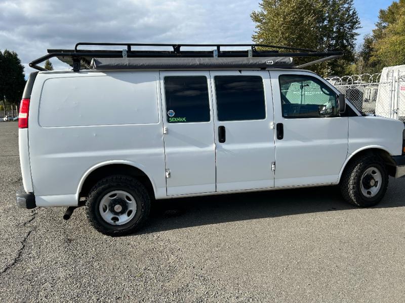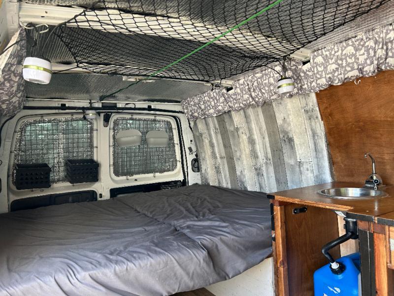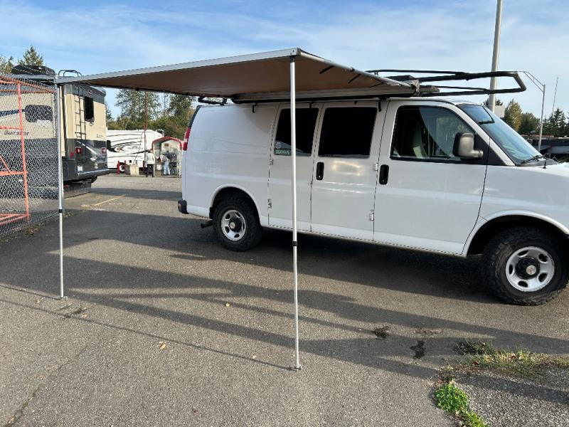 Dang! This Van is Adventure Ready and Has all that the Lite Traveler would want!Homemade Adventure Camper Van, Comes with a Rugged full length roof rack with heavy duty platform, Fantastic Variable speed Quiet High CFM roof vent fan to keep the interior more comfortable. It has lots of storage built in and a nice Double bed in the rear. It Also has a slide out tray for the Ice Box or 12v fridge (not provided) , and a countertop with storage and a sink with water pump and fresh water tank as well as a grey water tank. Simple but functional LED lighting and stretchy storage nets all over to keep your essentials organized. plus security screens on side and rear doors. The Tires look almost new and are going to be Great for your Backroad Adventures! Runs Good down the Road and the Air Blows Cold! Odometer says 155,243 Has the 6.0 V8 motor Also comes with a ARB Patio Awning to keep you shaded in your campsite.