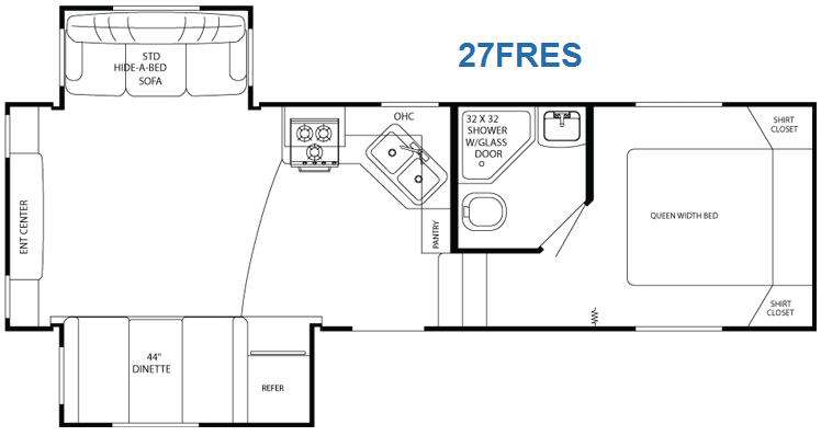 Double Slide Canyon Trail XLT Series FW w/Rear Full Wall Ent. Center, Booth Dinette & Refrigerator Slide, Standard Hide-A-Bed Sofa Slideout, 3 Burner Range, Dbl. Kitchen Sink, Overhead Cabinets & Pantry Slide, Step Up to Side Aisle Bath w/Angle Shower w/Glass Door, Lav. & Toilet, Door to Bedroom From Hall, Front Queen Bed w/Shirt Closets & Much More!