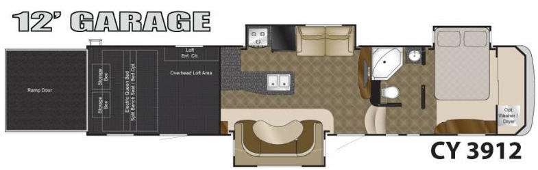 Triple Slide Cyclone FW Toy Hauler w/Rear Ramp Door to 12' Rear Garage Area, Queen Electric Bed/Split Bench Seat Opt. Overhead Loft w/Ent. Center, Side Cargo Entry, Door to Living Area, L-Shaped Counter w/Dbl. Kitchen Sink, 3 Burner Range/Refrigerator & Hide-A-Bed Sofa Slideout, U Shaped Dinette Slideout, Ent. Center, Side Aisle Bath w/Angle Shower, Lav., Front Queen Bed Slideout w/Storage, Dresser, Wardrobe w/Built in Storage, Overhead Cabinets, Opt. Washer/Dryer and Much More!
