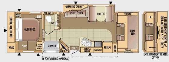 Single Slide Greyhawk Class C Motor Home, Rear Queen Bed w/Overhead Cab., Nightstand, Ward., Shirt Ward./TV Shelf, Private Toilet Area w/Lav. & Med. Cab., Tub, Cabinet, 32" LCD TV, J-Steel Sofa Slide Out & Booth Dinette w/Overhead Cab., Dbl. Kitchen Sink, Refrig., Micro., 3 Burner Range, Pantry, Overhead Cab., Pantry, Cabover Bunk, 18' Awning Opt., Pass Thru Storage and More.