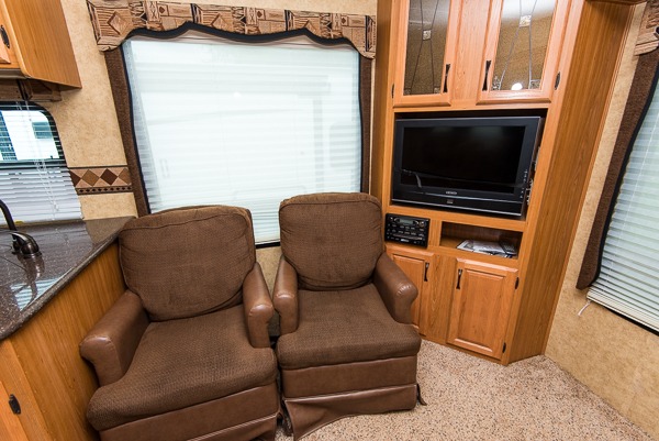 Double Slide Laredo FW w/Rear Living Area w/Corner Ent. Center, Overhead Cabinet, 2 Lounge Chairs, Air Mattress Sofa Sleeper & Booth Dinette Slide, Dbl. Kitchen Sink, Flip-Up Countertop Extension, 3 Burner Range, Pantry, Refrigerator, Linen Closet, Step Up to Side Aisle Bath w/Garden Tub, Toilet & Sink, Door to Bedroom, 2nd Linen Cabinet, Dresser, Queen Bed Slide, TV Wardrobe & Master Closet w/Sliding Doors & More!
