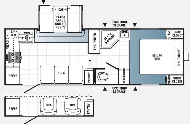 Single Slide Puma FW by Palomino w/Rear Kitchen Including Refrigerator, Dbl. Kitchen Sink, 3 Burner Range, Extra Large Booth Dinette Slideout w/Overhead Cabinet, Ent. Center, Sofa or Opt. Lounge Chairs, Pantry, Step Up to Bed & Bath w/Private Toilet Area, Angle Shower, Lavatory, Wardrobe, Front Queen Bed w/Nightstands & Shirt Closets, Overhead Cabinets Throughout, Pass-Thru Storage and More!