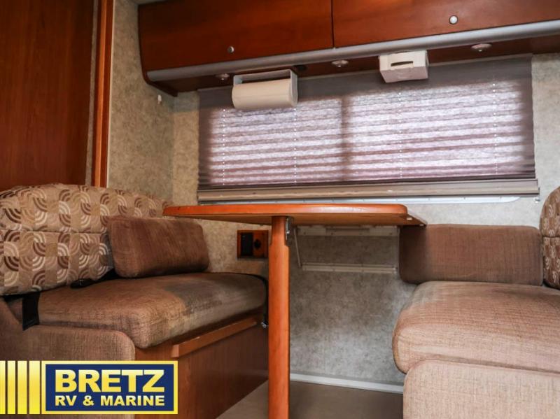 Take your travels up a notch in this Class C motorhome! This wonderful camper is just cozy enough to keep you comfortable while hiding a great amount of storage space!