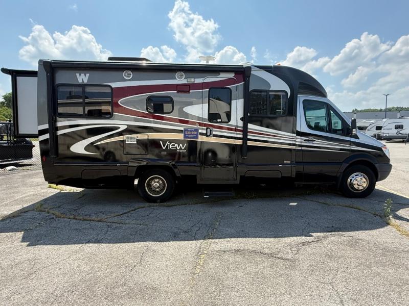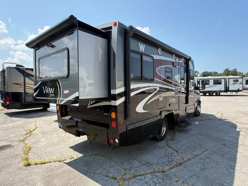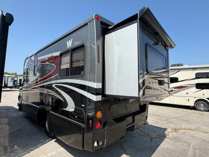 Class C Diesel View Profile by Winnebago w/Rear Queen Bed Slideout w/Nightstands, TV, Wardrobe, Sink, 2 Burner Range, Refrigerator, Shower, Lav. & Toilet, 2 Bench Seats in Front w/Table in Front of One Makes into Cross Coach Sleeping 38" x 82", Front TV and Much More.