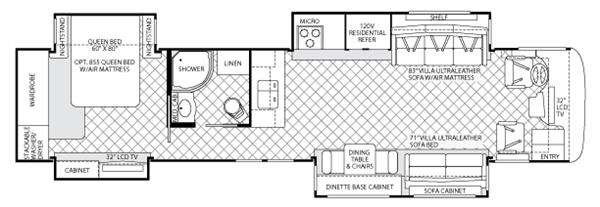Quad Slide American Revolution Motor Home, Rear Bedroom, Wardrobe, Stackable Washer/Dryer, Cabinet/32" LCD TV Slide, Queen Bed w/Nightstands Slide, Shower, Lav., Med. Cab., Linen, Toilet, Double Kitchen Sink, 3-Burner Range/Microwave/Residential Refrigerator/Sofa/Shelf Slide, Sofa/Sofa Cabinet/Dining Table & Chairs/Dinette Base Cabinet Slide, Overhead Cabinets Throughout & Much More. Available Options May Include: Queen Bed w/Air Mattress.