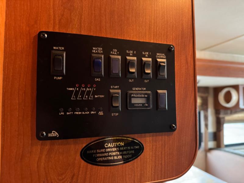 Double Slide Class A Mirada w/Bunk Beds, Rear Queen Bed w/Nightstands, Wardrobes w/LCD TV Above & Bunk Bed Slideout, Angle Shower, Sink, Toilet & Overhead Cabinet, LCD TV in Living Area, Booth Dinette & Sofa Slide, Euro Chair, Dbl. Kitchen Sink, 3 Burner Range, Refrigerator, Pantry and More!