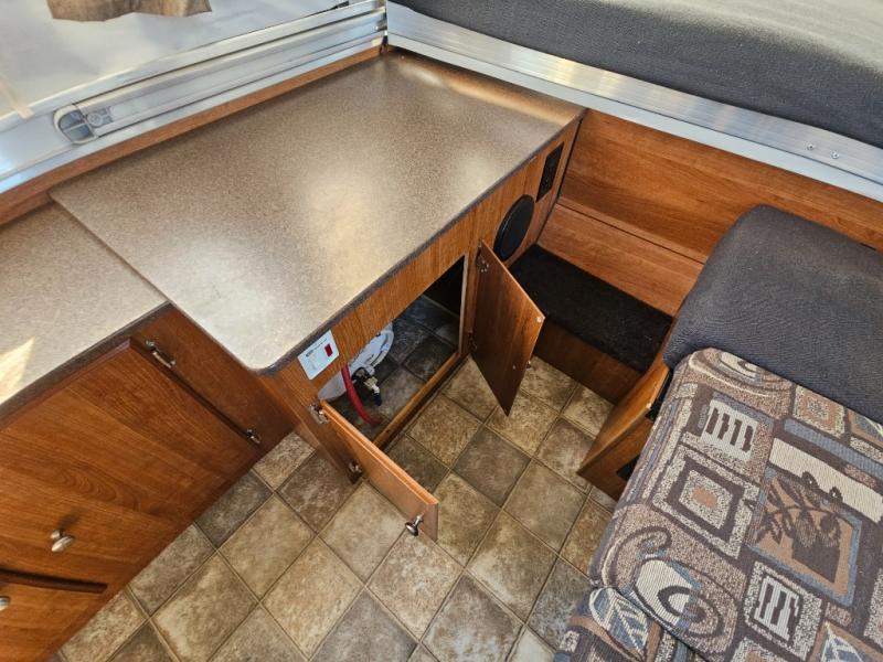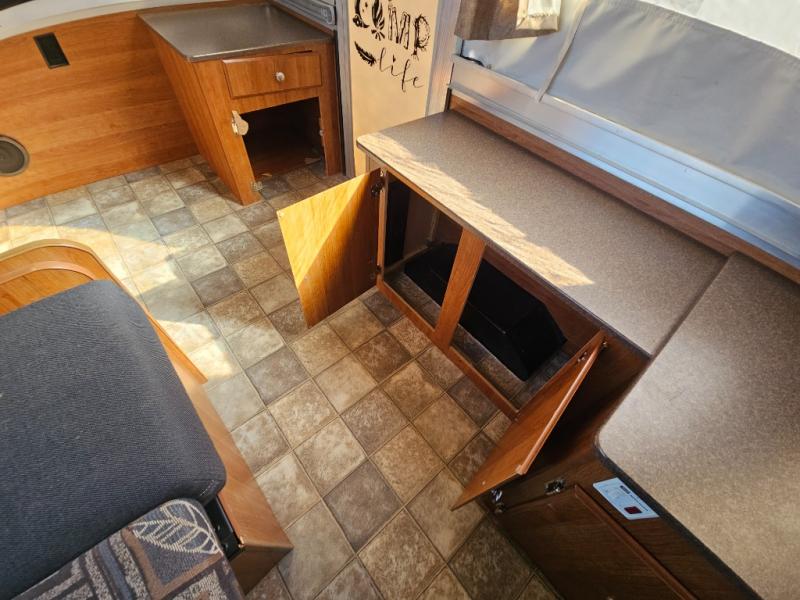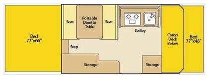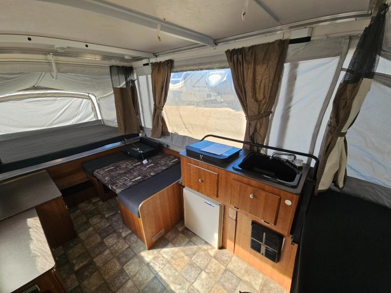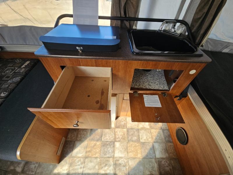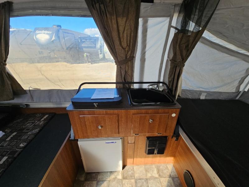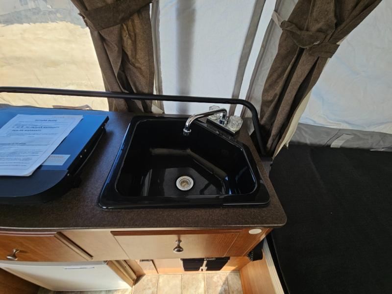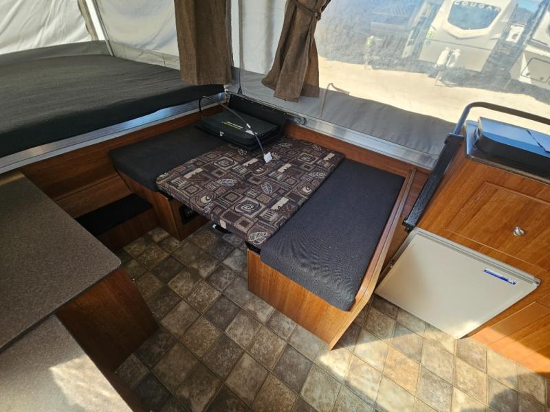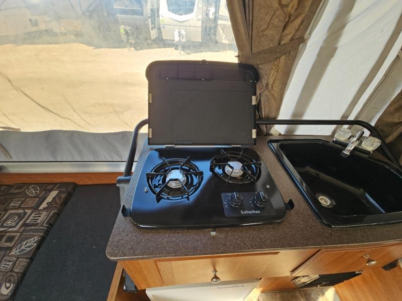 The Evolution Series Folding Pop-Up Camper by Coleman, Rear & Front Tent End Beds, Booth Dinette w/Portable Dinette Table, Storage, Bed Step, Galley w/2 Burner Range, Single Sink, Storage, Front Cargo Ext. Deck and More.