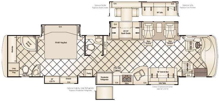 Quad Slide Tuscany Class A Diesel Coach by Damon w/1-1/2 Baths, Rear Full Bath Including Corner Shower, Ward., Linen/Washer/Dryer Prep, Toilet & Sink w/Mag. Rack, King Bed Slide w/Nightstands, 26" LCD TV & Dresser Slide, 1/2 Bath, Pantry, Residential Refrig./Pull-Out Counter/2 Burner Range/Dbl. Kitchen Sink & Sofa Air Bed Slide, Ext. Ent. Center, 2 Euro Recliners & Booth Dinette Slide, 40" LCD TV in Living Area & More! Available Options May Include: Buffet & Sofa, Side-by-Side Refrigerator.