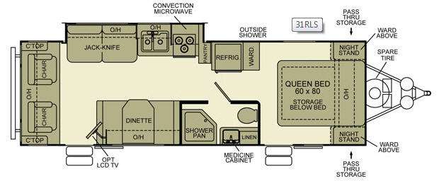 Single Slide Ever-Lite TT by EverGreen, Rear Lounge Chair w/Opt. 2nd Chair, Overhead Cab., Jack-Knife Sofa/Dbl. Kitchen Sink/3 Burner Range/Conv. Micro. Slide Out, Pantry, Booth Dinette, Opt. LCD TV, Refrig., Ward., Shower Pan, Lav. w/Med. Cab., Linen, Toilet, Front Queen Bed w/Storage Below, Nightstands w/Ward. Above, Overhead Cab. Throughout, Pass Thru Storage, Outside Shower, Spare Tire & Much More.
