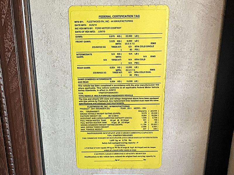 Used 2011 Fleetwood RV Bounder 33U Motor Home Class A