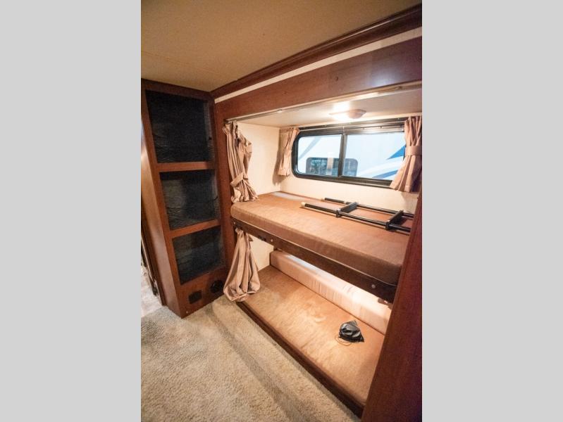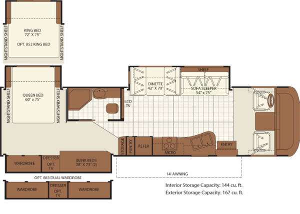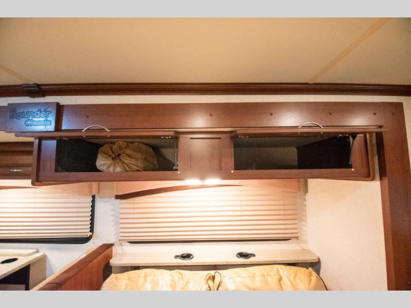 Triple Slide Bounder Classic Gas Class A Motor Home w/Rear Queen Bed/Nightstand/Shelf Slideout, Wardrobe/Dresser/Bunk Beds Slideout, Corner Angle Shower, Lav., Toilet, LCD TV, Dinette/Sofa Sleeper w/Shelf Slideout, Double Kitchen Sink, 3-Burner Range, Microwave, Refrigerator, Pantry, Storage, 14' Awning & Much More! Available Options May Include: King Bed w/Nightstand Shelf Slideout, Wardrobe/Dresser/TV/Wardrobe Slideout.