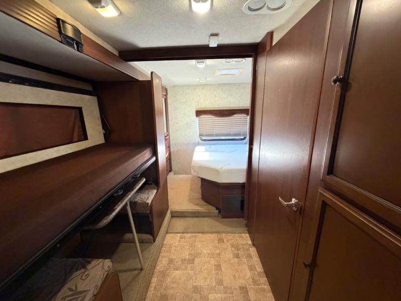 Double Slide Tioga Ranger Class C Motor Home, Rear Queen Bed w/Dbl. Nightstands, Wardrobe/Bunk Beds Slideout, Side Aisle Bath w/Shower, Toilet, Vanity w/Lav., 3 Burner Range w/Micro., Dbl. Kitchen Sink & Sofa Bed Slideout w/Seatbelts, Refrig., Booth Dinette, Cabover Bed, 10' Awning & Much More. Available Options May Include: LCD TV in Bedroom, Flat Panel TV Above Bunk Beds, Front LCD TV, Cabover Enter. Cntr. w/32" LCD TV, 32" Swing-Arm Home Ent. Ctr., Rear Dinette w/Swing Down Bunk.