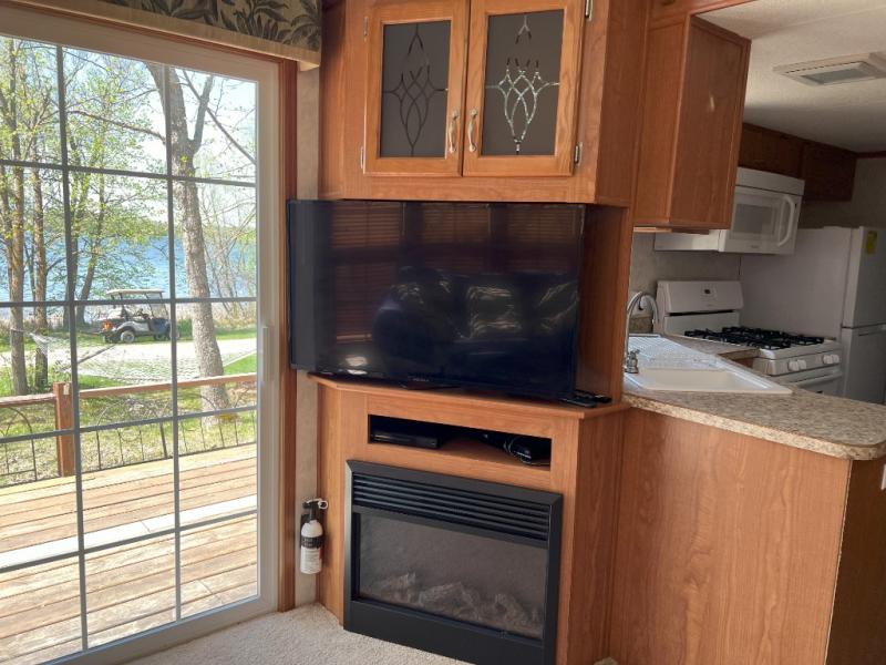 Used 2011 Quailridge 39FLML Park Model set up on a Lakeside Seasonal Site at Oak Lake Campground in Kerrick, MN,