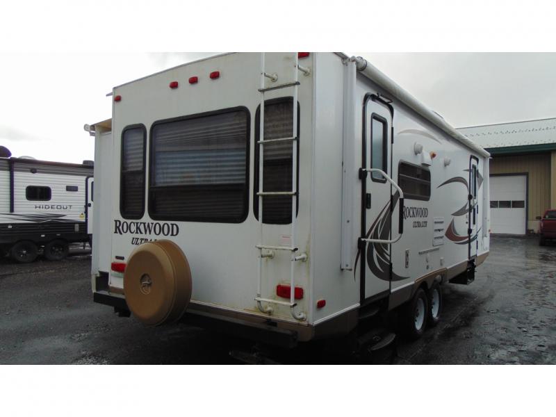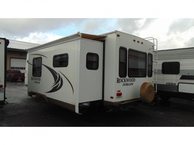 Single Slide Rockwood Ultra Lite Travel Trailer, 2-Lounge Chairs, Nightstands, Sofa/Dinette Slide, Ent. Center, C'Top Ext., Double Kitchen Sink, Microwave, 3-Burner Range, Refrigerator, Med. Cab., Lav., Shower, Toilet, Linen, Flip-Up Shelf, Queen Bed, Double Wardrobes w/Nightstands, Overhead Cabinets Throughout, Ext. Storage & Much More.