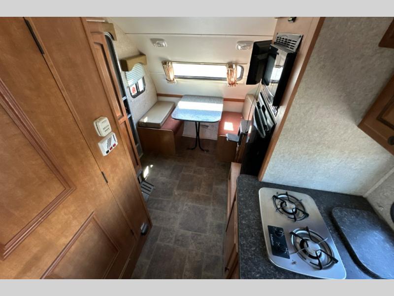 Heartland Single Slide MPG Travel Trailer w/Rear Dinette, Storage Cabinet, Refrigerator w/Microwave Above/2 Burner Range Top & Sink Slideout, Storage Cabinet, Wet Bath, Front Queen Bed, Exterior Storage and More!