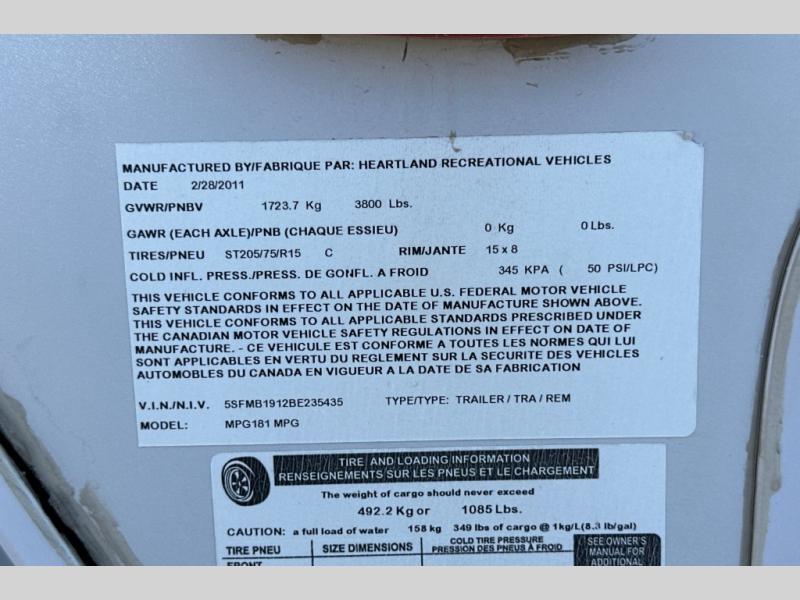 Used 2011 Heartland MPG M-181 Travel Trailer