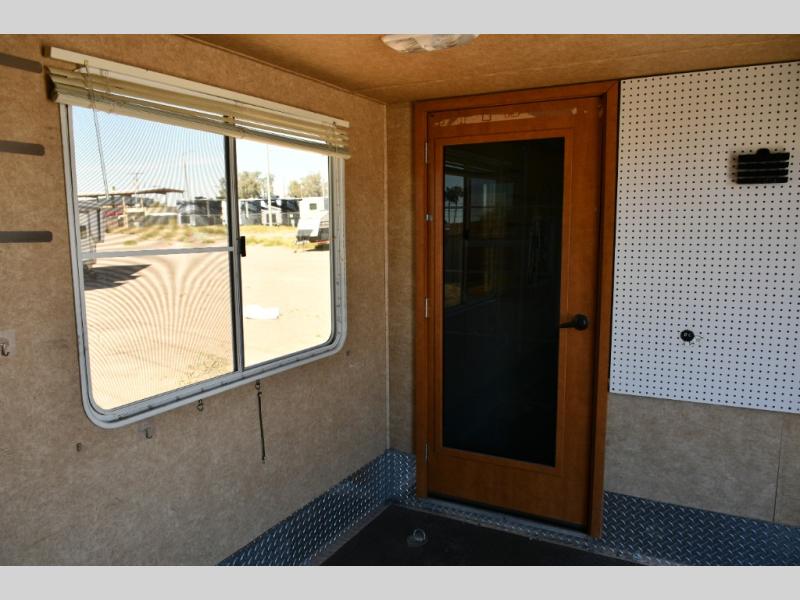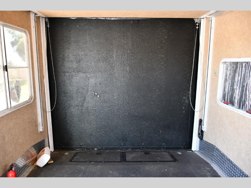Rear ramp door leading to a 12' cargo garage, ideal for motorcycles, ATVs, or gear.