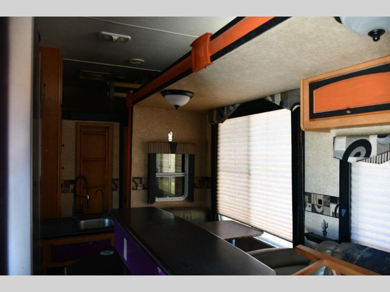 The Road Warrior 385 is all about flexibility. Load up your toys, convert the garage into extra sleeping or lounge space, and enjoy a layout that adapts to your crew. The island bar, open living area, and loft create multiple zones for relaxing, entertaining, and recharging between rides. Whether you’re boondocking in the desert or setting up at a motorsports park, this toy hauler keeps your adventure running smoothly.