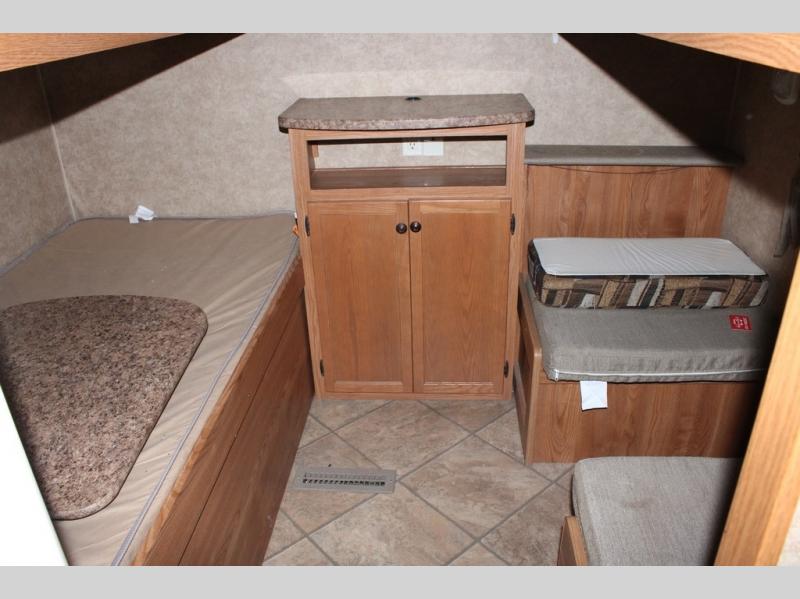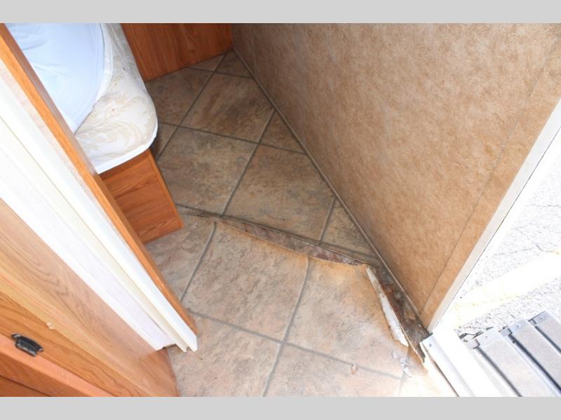 There is water damage on this camper with a soft spot near the bed and damage in front of the wardrobe. The back wall is rippled from water. Tires also will need to be replaced. Call for more details.
