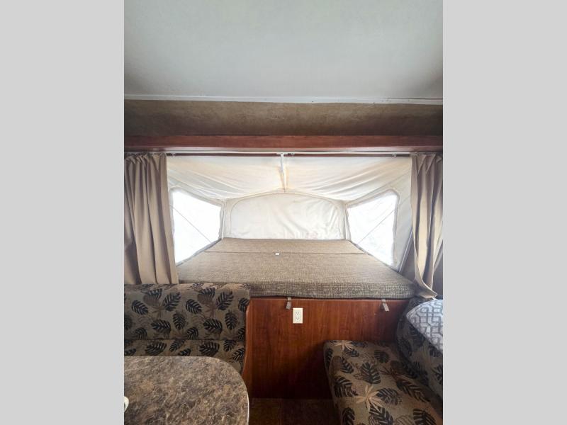 Expandable Jayco Jay Feather Sport Trailer, Rear & Front Tent Beds, Bath w/Corner Shower, Toilet, Lav., Overhead Cab., Refrig./TV Shelf, Booth Dinette, Overhead Cab., Single Galley Sink, 3 Burner Range, Microwave, J-Steel Sofa w/Overhead Cab., 10' Awning & More.
