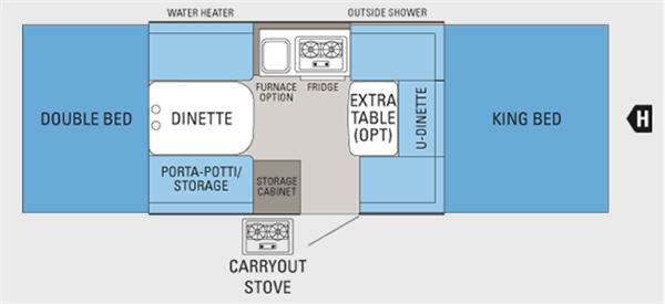 Jayco Jay Series Pop-Up Camper, Double & King Tent End Beds, Booth Dinette, Porta-Potti/Storage, Carryout Stove, Single Kitchen Sink, 2 Burner Range, Refrig., Storage Cabinet, U-Dinette, Water Heater, Outside Shower & More. Available Options May Include: Furnace, Dinette w/Extra Table.