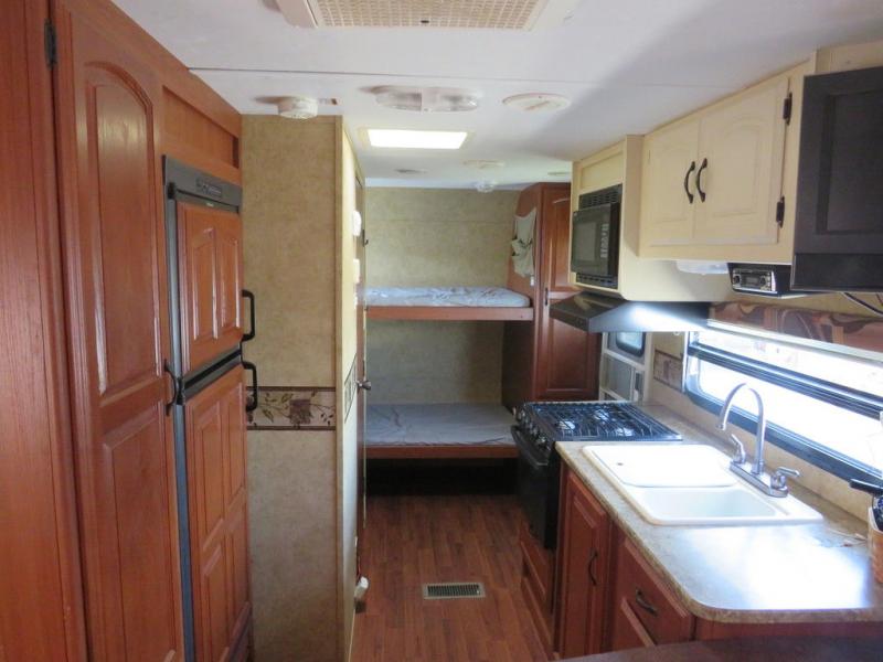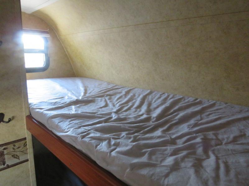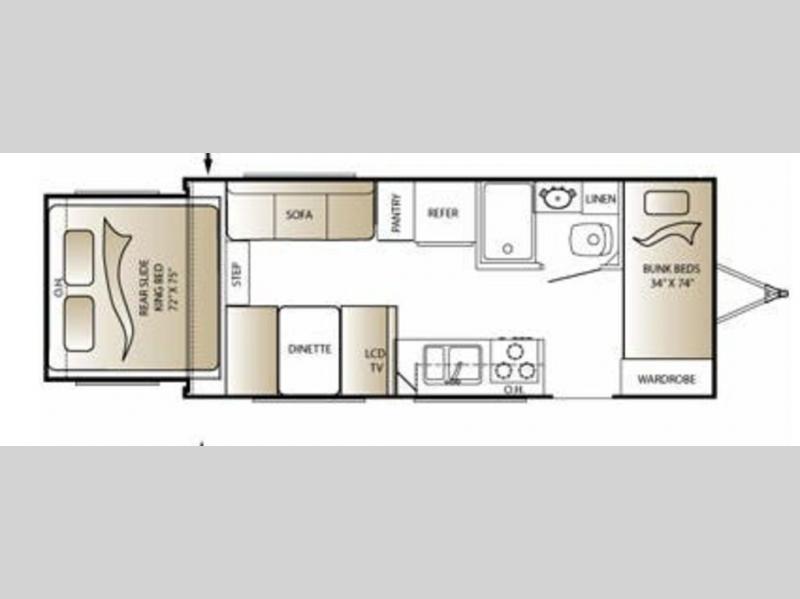 Outback Bunkhouse Travel Trailer w/Rear Slideout King Bed, Sofa, Booth Dinette, Pantry, Refrigerator, Double Kitchen Sink w/Overhead Storage & LCD TV, 3 Burner Range, Front Bunk Beds w/Wardrobe, Tub, Lavatory, Linen Closet, Outside Bicycle Storage, Outside Camp Kitchen and More.