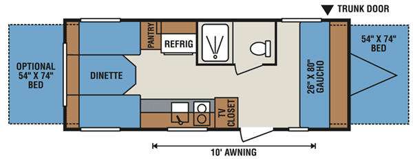 Sportsmen Classic Travel Trailer, Rear Dinette, Pantry, Refrigerator, Tub, Toilet, Gaucho, Front Tent Bed, TV Closet, 2-Burner Range, Single Galley Sink, Overhead Cabinets Throughout, 10' Awning & Much More. Available Options May Include: Rear Tent Bed.