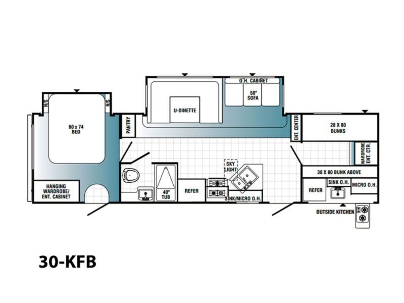 Bunkhouse Puma Travel Trailer by Palomino RV w/Rear Queen Bed Slideout w/Nightstands, Hanging Wardrobe/Ent. Center, Private Bedroom Entry, Pantry, Bath w/Toilet, Sink, Tub/Shower, U-Dinette & Sofa Slideout, Ent. Center, Refrigerator, 3 Burner Range, Dbl. Kitchen Sink w/Skylight Above, Overhead Cabinets, Front Bunk Beds, 3rd Bunk Above Outside Front Kitchen Including Refrigerator, Sink & 2 Burner Cooktop w/Microwave, Wardrobe, Ent. Center in Bunkhouse and So Much More!