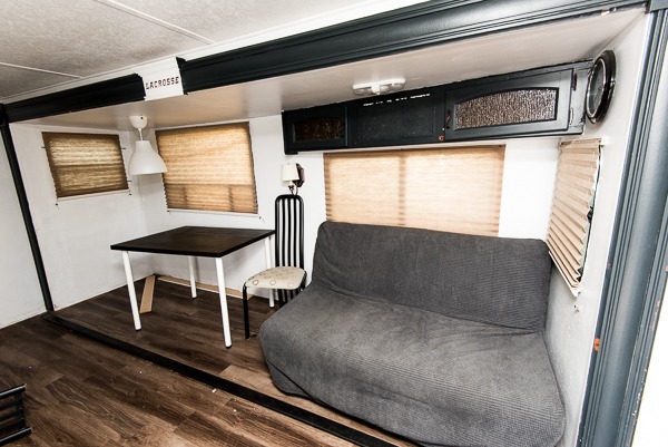 Double Slide Travel Trailer LaCrosse, Rear Bunkhouse w/Slide Out Bunk Beds, 2nd Bunk, Ent. Ctr. Below Bunk, Wardrobe, Rear Exterior Kitchen w/Range, Sink & Refrig., Tub, Toilet, Lav., Ward., Pantry, Refrig., 3 Burner Range, Dbl. Kitchen Sink, U-Shaped Dinette, Air Mattress Hide-A-Bed, & Overhead Cab. Slide Out, Ent. Center, Front Queen Bed w/Overhead Cab., Double Shirt Closet & Much More.