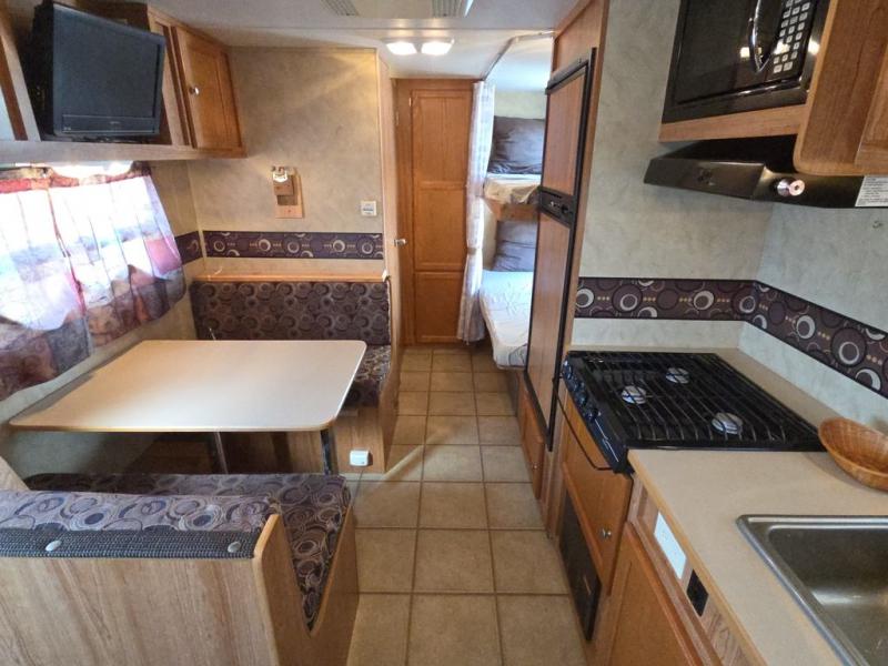 R-Vision Trail Sport Bunkhouse Travel Trailer w/Rear Corner Bunk Beds, Wardrobe, Rear Corner Bath Including: Full Tub, Skylight, Vanity w/Sink & Med. Cabinet, Toilet, Radio, 26" TV, Pantry, U-Dinette, Refrig., 3 Burner Range, Dbl. Kitchen Sink, Pantry, Front Queen Bed w/Wardrobes Both Sides, Storage Box Riser and Much More! Available Options May Include: Queen Murphy Bed.