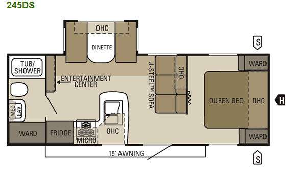 Starcraft Autumn Ridge Travel Trailer w/Rear Bath w/Tub/Shower, Toilet, Sink w/Med. Cabinet, Wardrobe, Refrigerator, 3 Burner Range w/Microwave Above, Dbl. Kitchen Sink, Overhead Cabinets, Ent. Center w/Overhead Storage, Booth Dinette Slide, J-Steel Sofa w/Overhead Storage, Front Queen Bed w/Wardrobes Both Sides of Bed, Front Pass-Thru Storage and More!