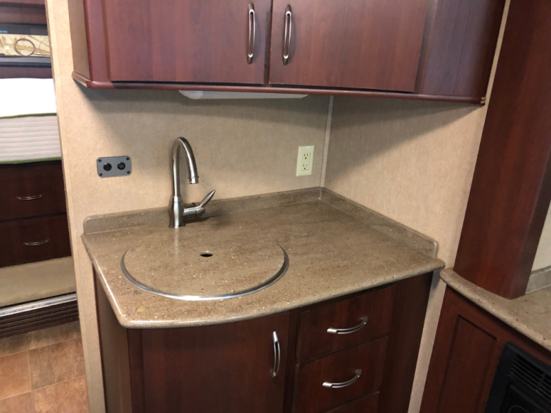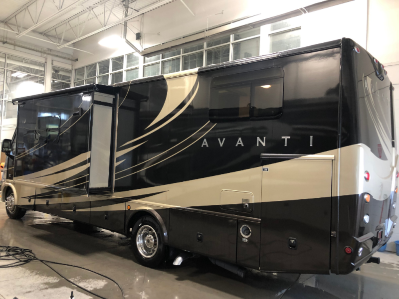 Thor Motor Coach Avanti Class A Diesel Coach w/Rear Queen Bed w/Wardrobe, 19" LCD TV, 24" x 32" Shower, Private Toilet Area w/Lav., Round Kitchen Sink, 2 Burner Cooktop w/Microwave/80"U-Shaped Dinette Slide, 26" LCD TV in Living Area, 64" Chaise Lounge, 54"x74" Drop Down Bed and Much More!