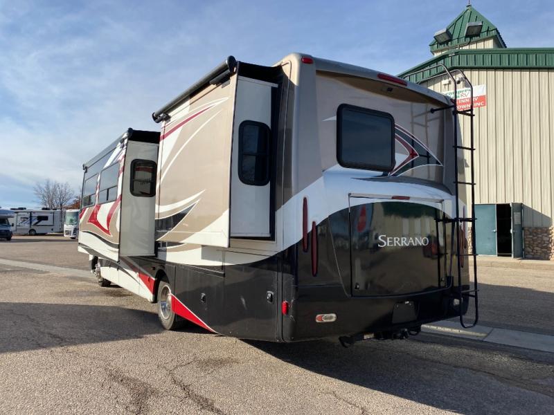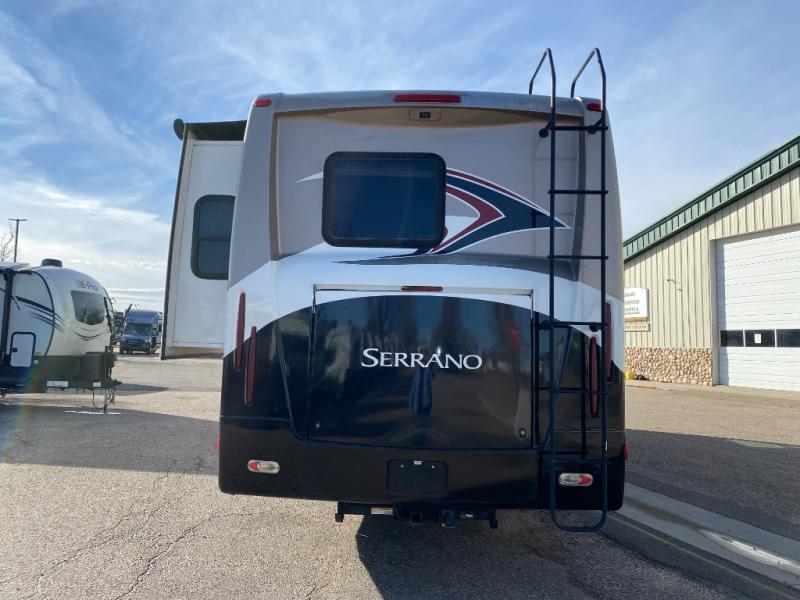 Thor Motor Coach Serrano Class A Diesel Coach w/Rear Queen Bed Slide w/Dresser, Walk Thru Bath w/Private Toilet Area & Sink, Shower, Hide-A-Bed Sofa & U-Shaped Dinette Slide, 32" LCD Mid Ship TV, Round Kitchen Sink, 2 Burner Stove, Microwave, Refrigerator, Pantry, Overhead Storage Throughout and More! Available Options May Include: 19" LCD TV in Bedroom.