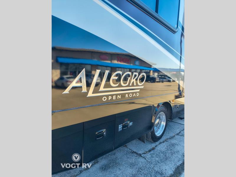 Outside, large storage compartments give you plenty of room for gear, chairs, and travel essentials. Whether you’re planning weekend getaways or cross-country adventures, this Allegro Open Road is built to handle it comfortably.