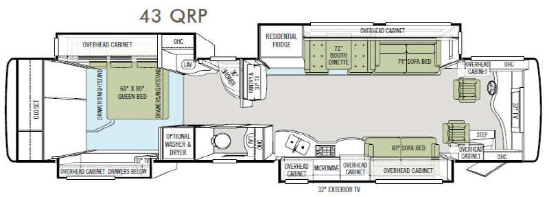 Tiffin Allegro Bus Diesel Coach w/Quad Slideouts, Rear Closet, Slideout King Bed w/Nightstands & Lav. w/Overhead Storage, 32" LCD TV w/Overhead Storage & Drawers Below Slideout, Private Toilet Area w/Lav., 36" Shower, Residential Refrig./Booth Dinette & Sofa Bed Slide, 37" LCD TV Above Cab Area & 32" Exterior TV, Pantry/37" TV in Living Area, 83" Sofa Bed/Stove w/Microwave & Double Kitchen Sink Slideout & Much More! Shown w/Freightliner Specs. Avail. Options May Include: Washer/Dryer, King Bed.