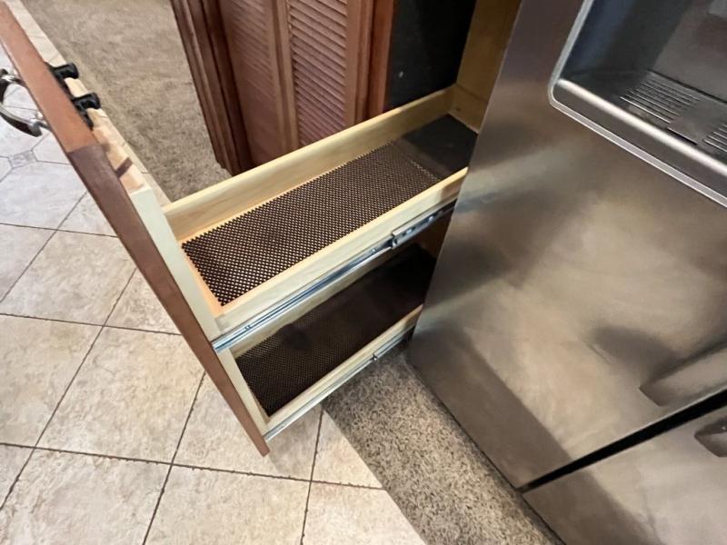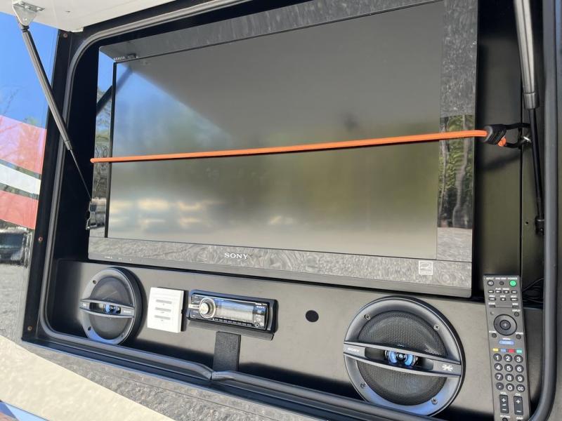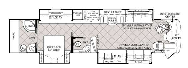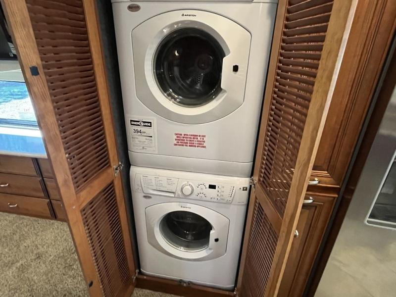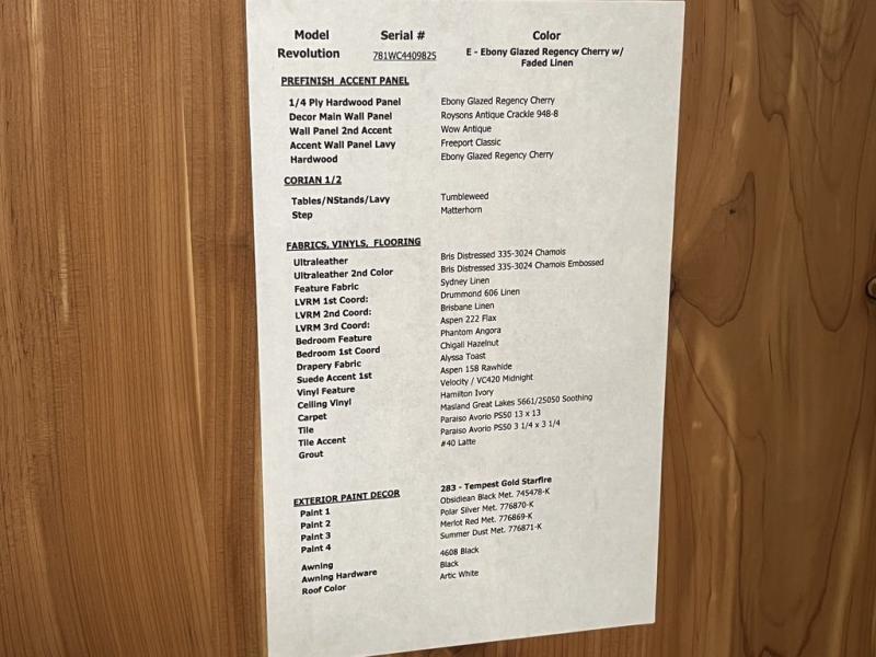 Triple Slide American Revolution Motor Home, Rear Bath w/Ward., Shower, Toilet, Lav., Queen Bed w/Nightstands Slide, Half Bath, China Cab., 40" LCD TV, 3-Burner Range/Microwave/Double Kitchen Sink/Sofa Slide, 32" LCD TV Mid Ship, Sofa/Shelf/Dining Table & Chairs/Base Cab./Residential Refrigerator/Pantry/Stackable Washer/Dryer/32" LCD TV Slide, Overhead Cabinets Throughout & Much More. Available Options May Include: Queen Bed w/Air Mattress, Face-to-Face Dinette Ensemble, Dishwasher & More.