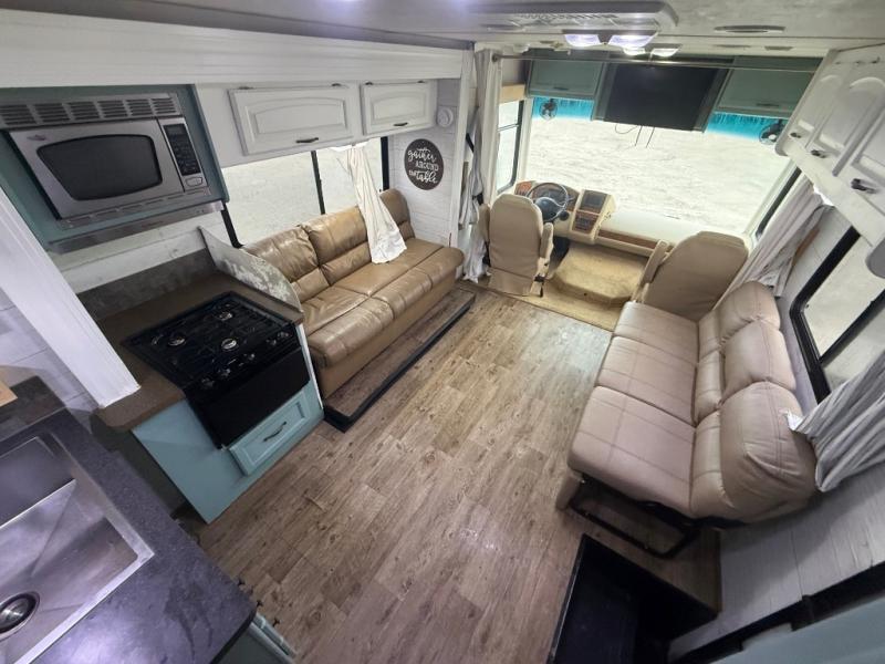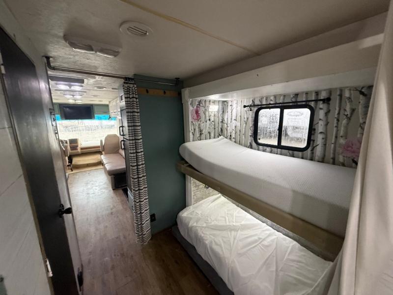 Coachmen Mirada Silver Edition Class A w/Rear Queen Bed w/Nightstands, Slideout Wardrobe & Bunk Beds, Tub/Shower, Toilet & Sink, Pantry, Refrigerator, Dbl. Kitchen Sink, Overhead Cabinets, 3 Burner Range & Hide-A-Bed Sofa w/Air Mattress, Booth Dinette, 32"LCD TV in Living Area, 19" LCD TV in Bedroom, and Much More!